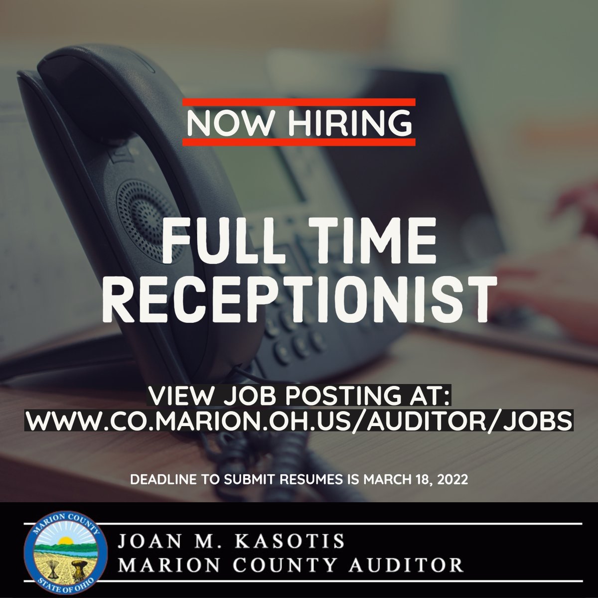 Joan M Kasotis Marion County Auditor On Twitter Applications Are Now Being Accepted For The Position Of Full Time Receptionist With The Marion County Auditor S Office Please Visit Https T Co Jj6zocn0fo For Details